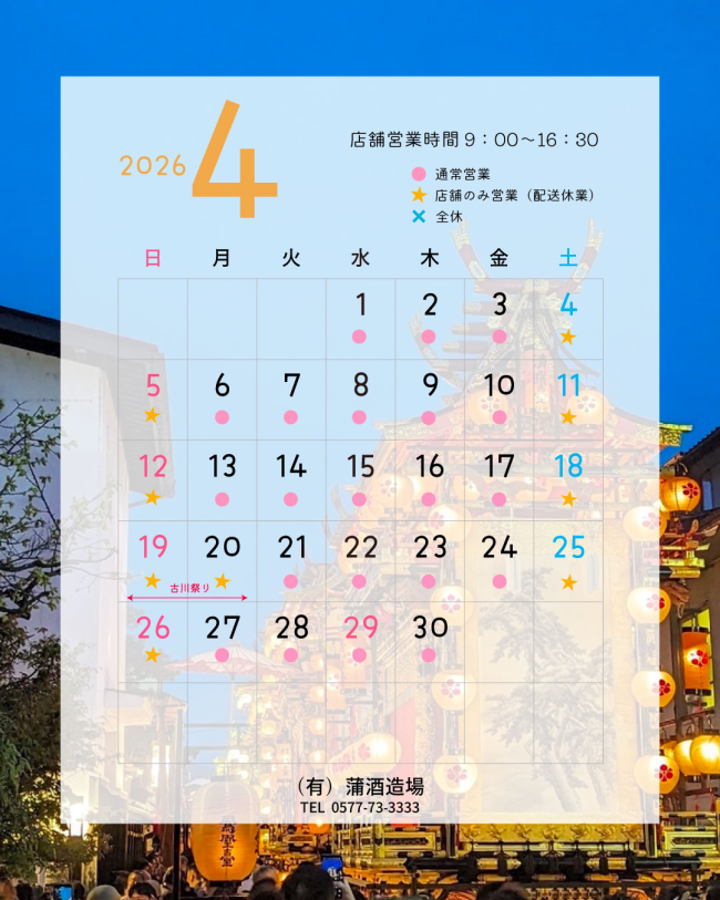 ◎蒲酒造・古川町内の4月のイベントを下記にまとめてみました◎